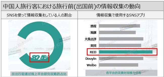 2023年の最新データで、中国では旅行者の80%以上が旅行前にSNSを使って観光・レジャー情報を収集していることが分かっています。なかでも、最も利用率が高い中国版Instagram 「小紅書 (RED)」 や、中国版TikTok 「抖音(Douyin)」 は、情報収集のツールとして欠かせない存在です。