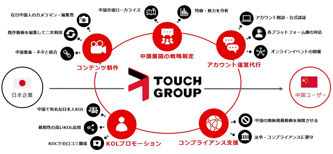 事業内容: 中国市場進出支援事業(中国SNS運用代行、中国向けSNS動画制作、KOLマーケティング)、マルチチャンネルネットワーク(MCN)事業