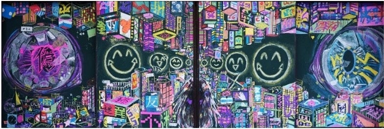 学校の黒板をキャンバスにチョークで描く作品。これは若い世代の才能と純真な志により、アート作品