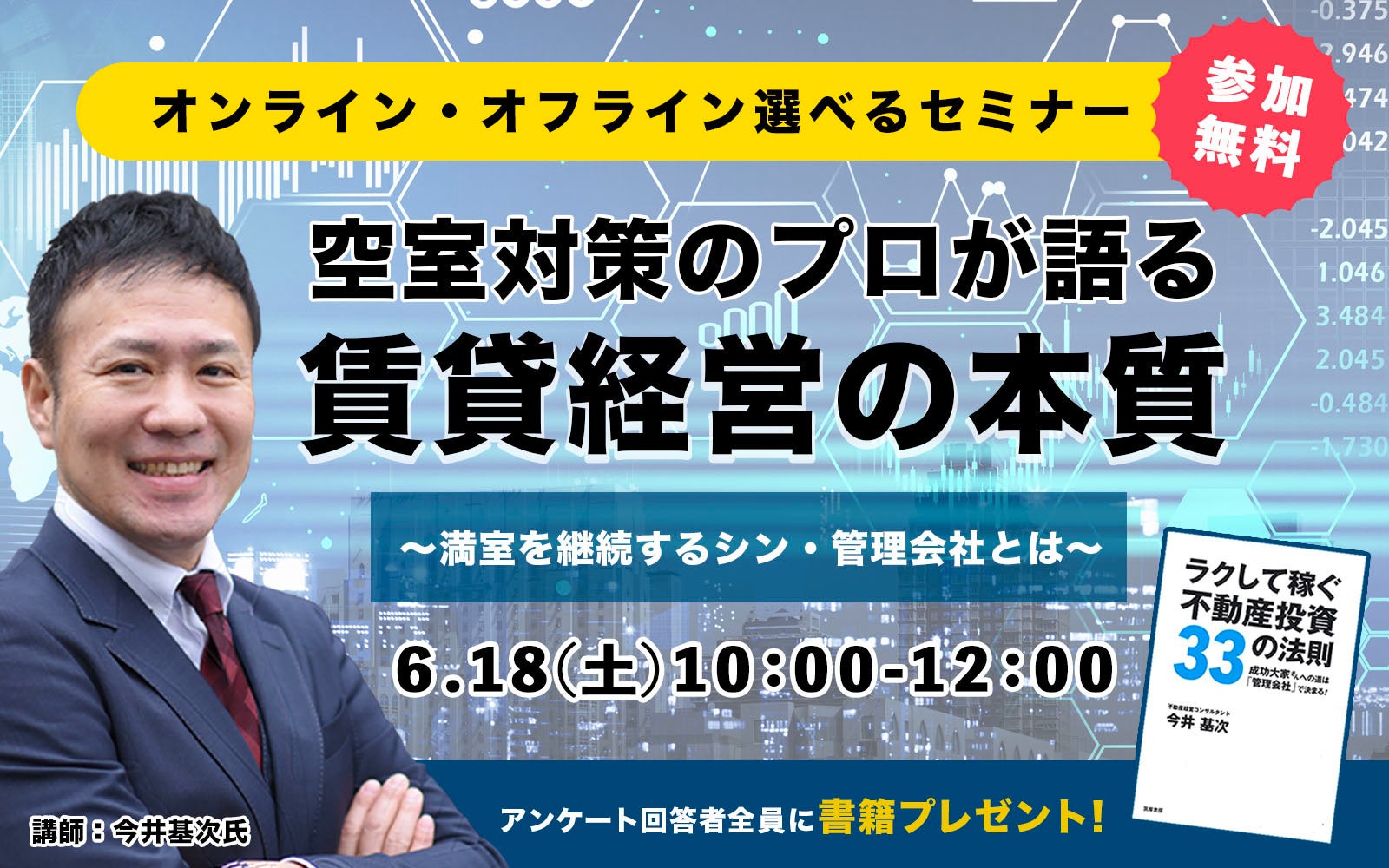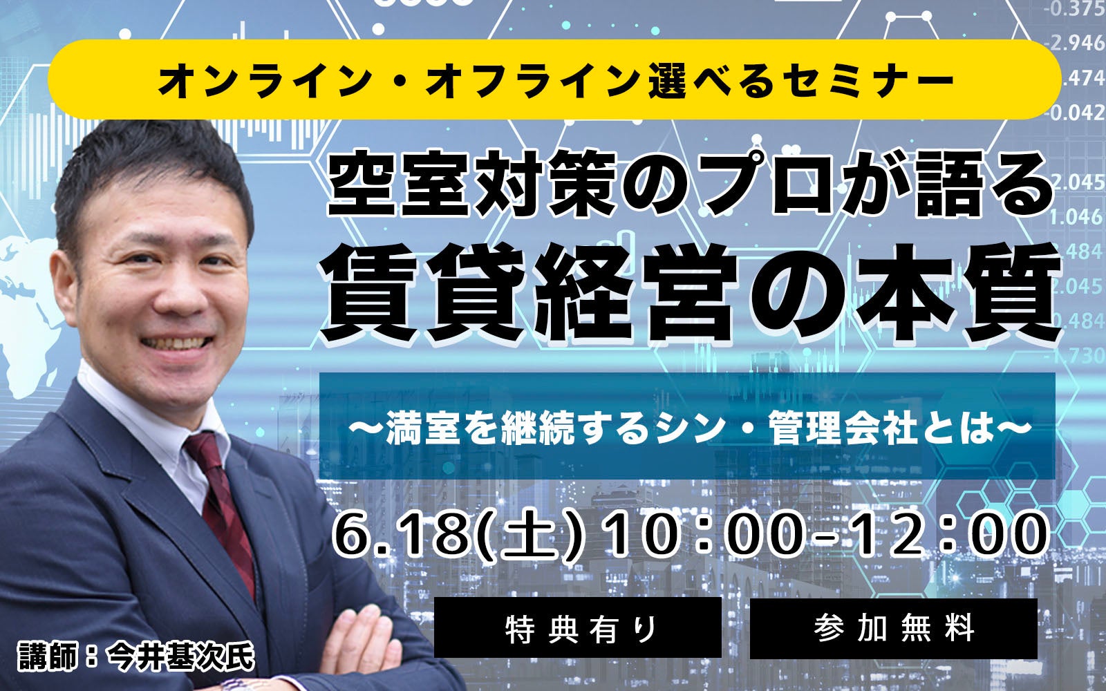 三和エステート主催!6月18日(土)オンライン・オフライン選べる【無料セミナー・特典あり】空室対策のプロが語る賃貸経営の本質