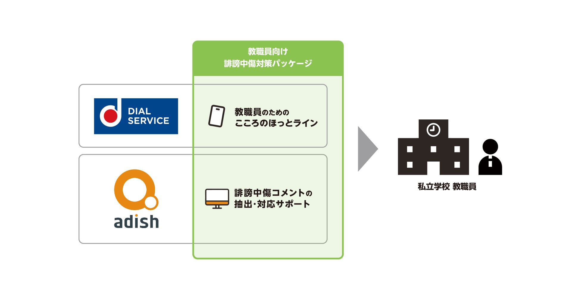 企業・自治体のハラスメントやメンタルヘルス相談のホットラインサービスを開発・提供するダイヤル・サービス株式会社(本社:東京都千代田区、代表取締役今野 由梨、以下ダイヤル・サービス)は、デジタルエコノミー特化のカスタマーサクセスソリューション・プロバイダーであるアディッシュ株式会社(本社:東京都品川区、代表取締役 江戸 浩樹、証券コード:7093、以下アディッシュ)と連携し、私立学校の小学校・中学校・高等学校の教職員を対象に、誹謗中傷やメンタルヘルス不調から守る「教職員向け誹謗中傷対策パッケージ」サービスの提供を、2024年10月1日(火)より開始します。