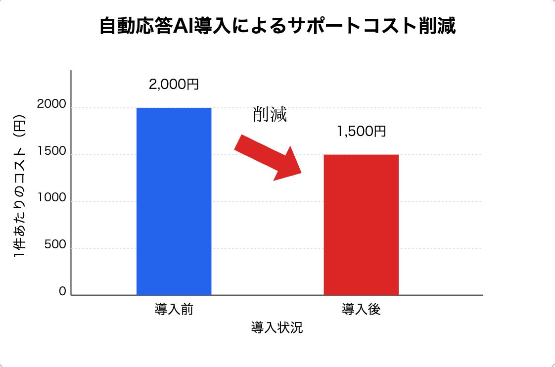 事例として、カスタマーサポートセンターに生成AIによる自動応答を導入し、サポートコストを1件あたり2,000円から1,500円に削減し、年間では1,500万円のコスト削減につながりました。また、顧客提案AIの活用により、最適な提案と営業で成約率を10%向上させました。
