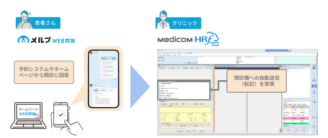 メルプWEB問診、ウィーメックスの電子カルテシステム「Medicom-HRf Hybrid Cloud」と自動取込連携を実装