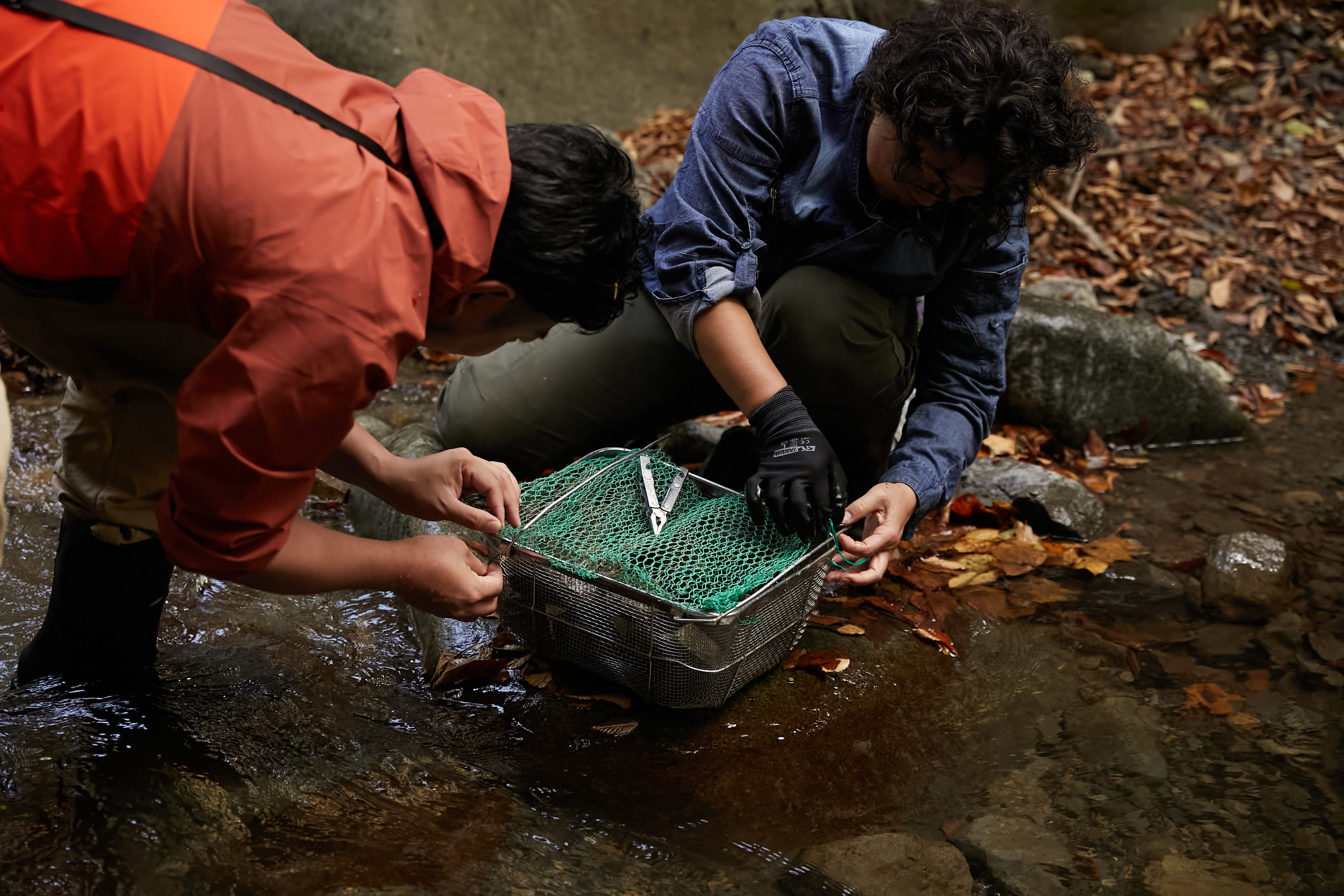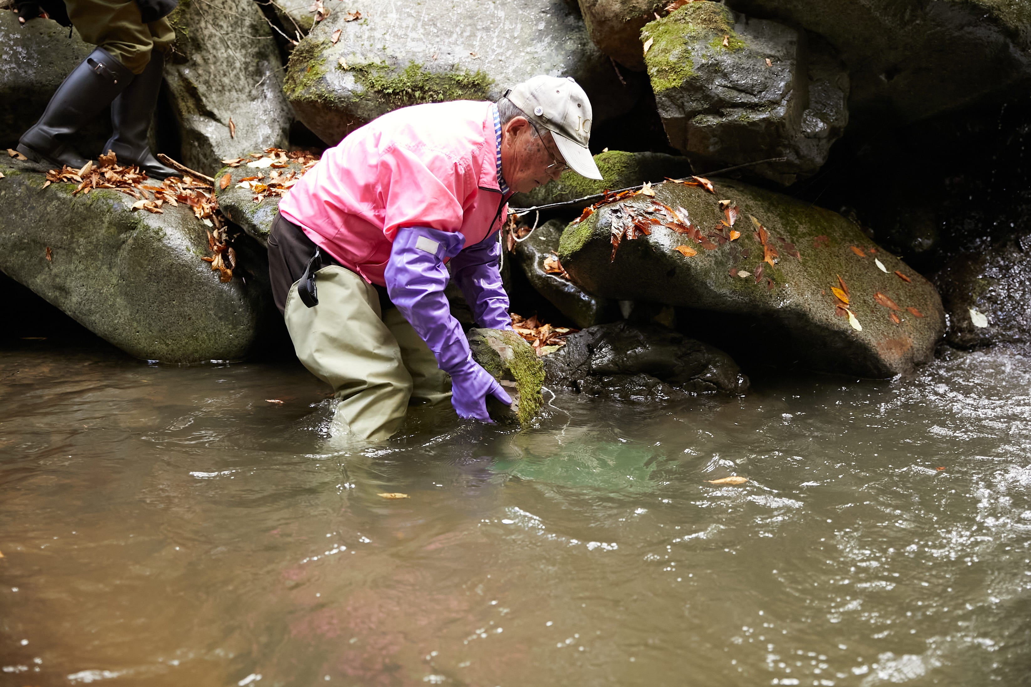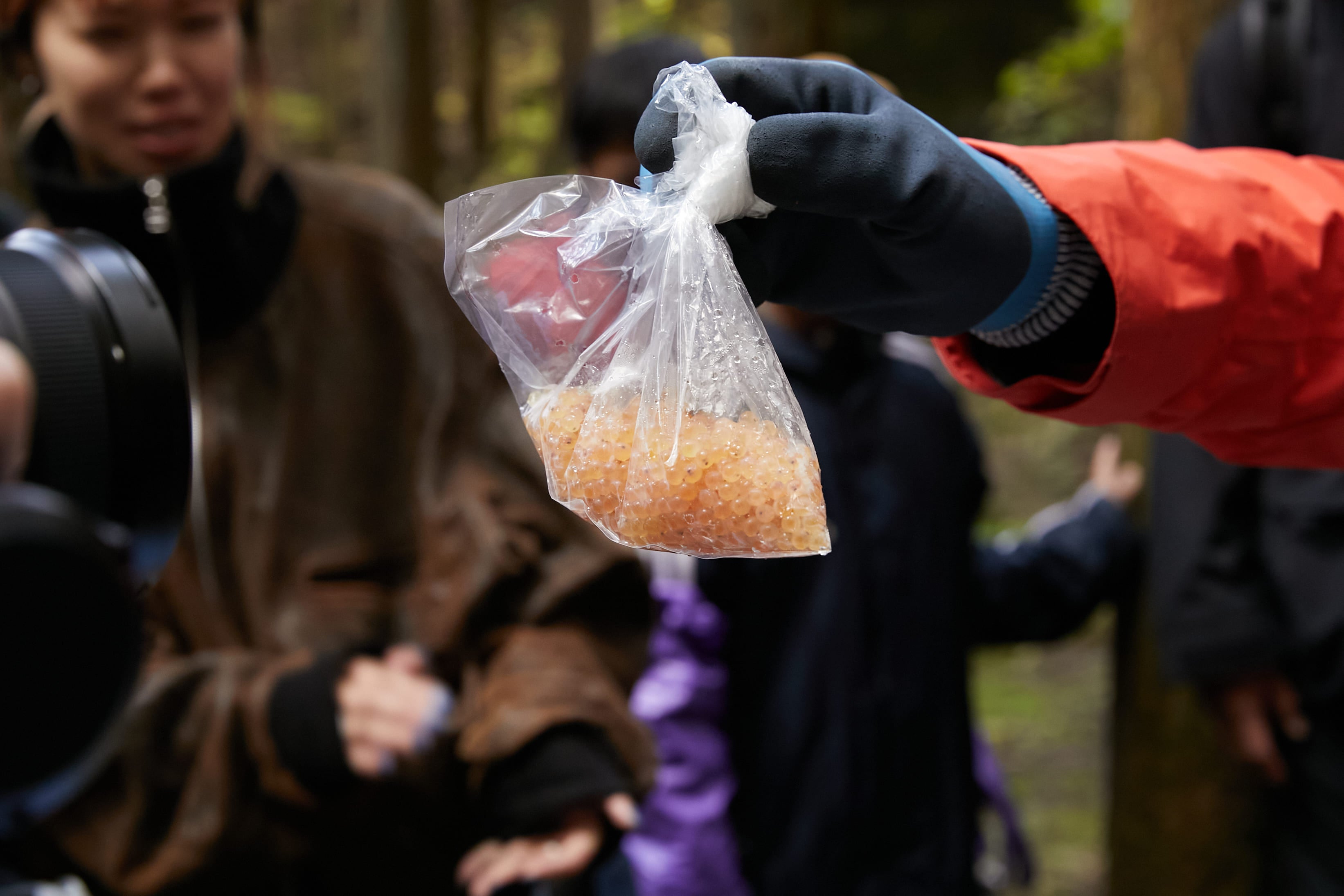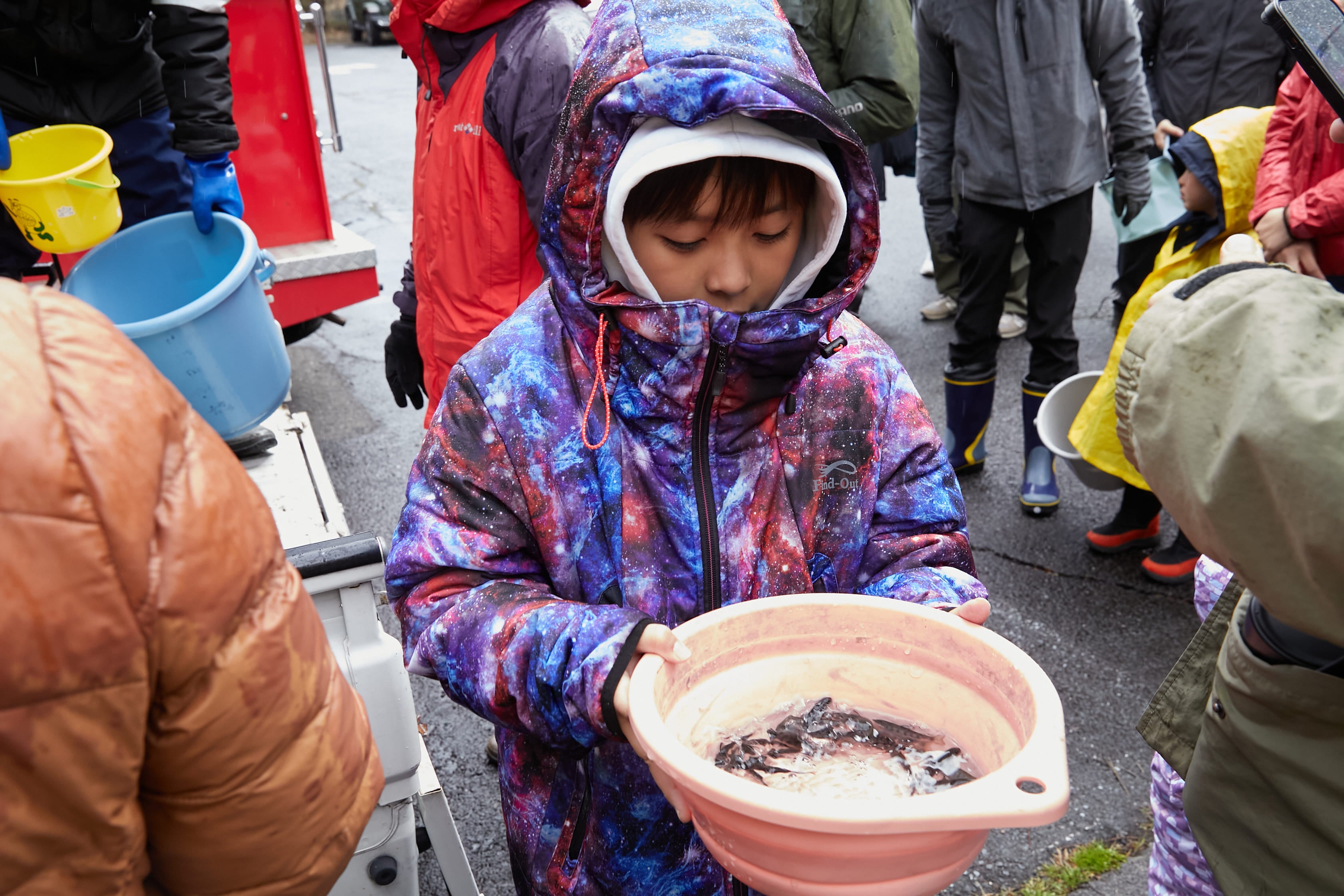 Hydro Flaskの支援により、2023年10月21日(土)は森での間伐体験、2023年11月5日(日)は小河内漁業協のガイドのもと普段は足を踏み入れない源流での水源探索を通じて、どのようにして「川」が守られているのかを体験しました。そしてサクラマスの復活を目指し、2024年3月23日(土)には約1万匹の稚魚を放流しました。