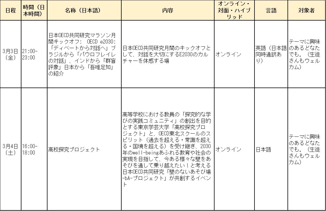 この「プロジェクト∞無限大(Project ∞ Infinity)」と「壁のないあそび場-bA-」を軸にして、この度、日本がOECD東北スクールを通して国際舞台においてリーダーシップを発揮し続けるきっかけとなった3月を記念し、共創パートナーの皆様と、下記の通り「日本OECD共同研究月間」を開催いたします。