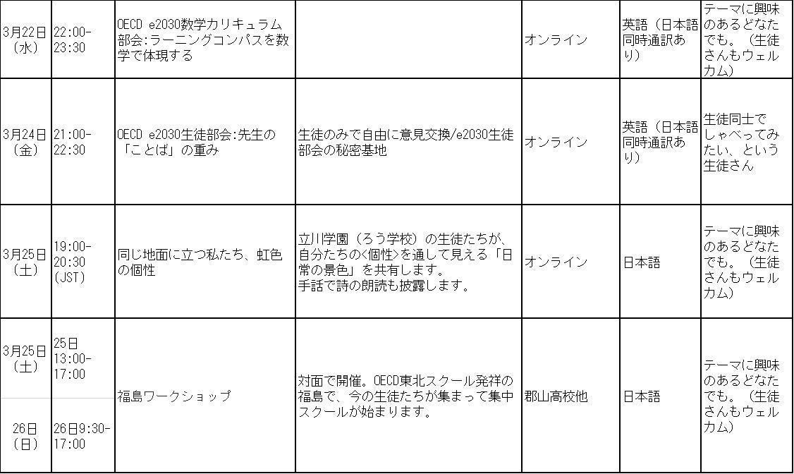 その他、普段はOECD本体のEducation 2030コミュニティメンバーのみが参加可能な国際会議も、日本の教育関係者に、世界の仲間と国際共創するプロセスを肌で感じていただくために、通訳サポートなど可能な範囲で準備をしております。皆様のご参加をお待ちしています。