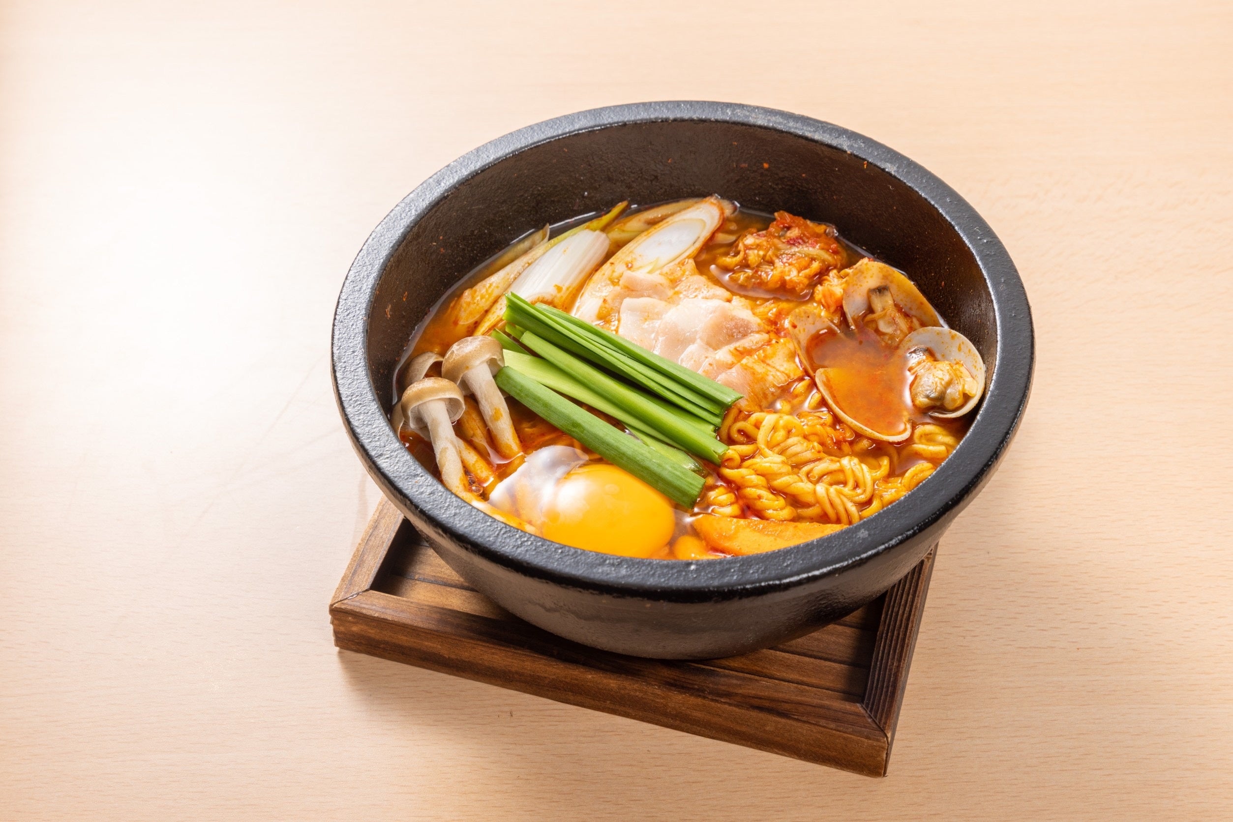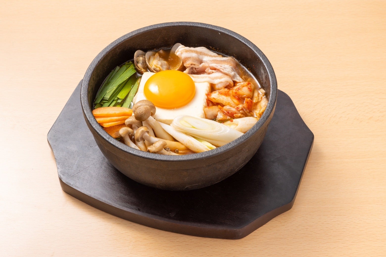 通常スンドゥブには豆腐を入れますが、 豆腐ではなく麺を入れたメニュー。