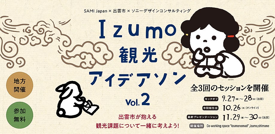 そこで、出雲市内のIT開発を担うSAMI Japanと、デザインを通じて新しい旅のスタイルを提案するソニーデザインコンサルティング株式会社が共同で「Izumo観光アイデアソン」を行います。