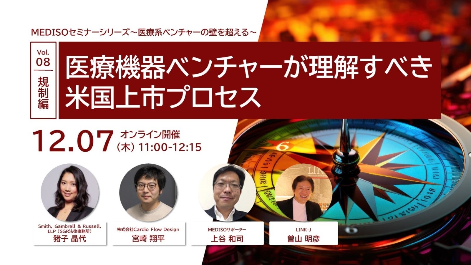 「MEDISOセミナーシリーズ~医療系ベンチャーの壁を超える~ vol.08規制編:医療機器ベンチャーが理解すべき米国上市プロセス」を開催