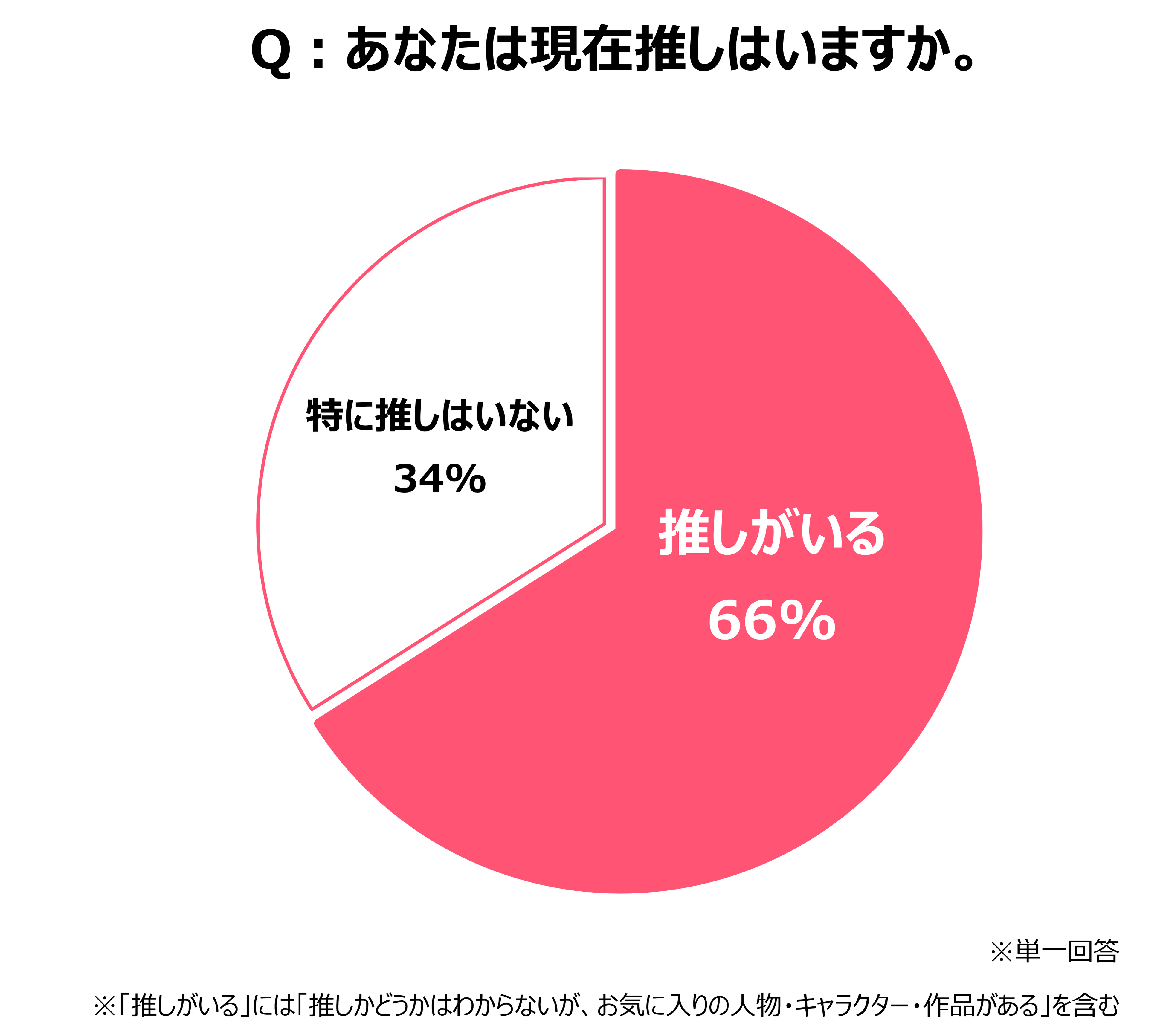 「推し」に関しては、今回も「推し」がいると答えた人は66%と前回よりも更に増加。