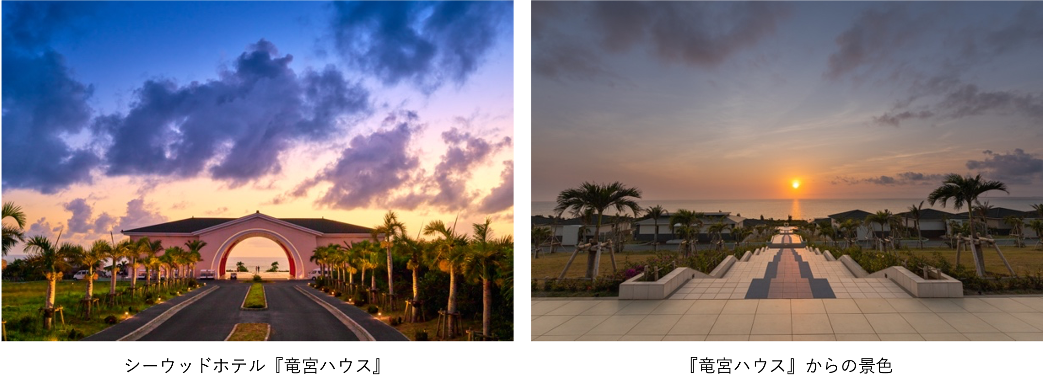 宮古島と来間大橋で繋がる離島、来間島に、 2020年2月オープン致しました。 約13万平方メートルの広大な敷地には、 客室にプライベートプールもしくはジャグジーを設置した107棟の『ビラハウス』、 62室のホテル棟『首里ハウス』、 フロント・和食レストラン・ショップ・ジムを備える『竜宮ハウス』、 メインプールと洋食レストランを備える『ビーチハウス』、 オールハンドトリートメントの『スパハウス』といった5つの“ハウス”を備える、まるで街(タウン)のような絶景リゾートです。印象的なアーチ型デザインの『竜宮ハウス』から見る宮古ブルーの大パノラマや、幻想的なサンセット、息を呑むほど美しい圧巻の星空など、様々な時間帯に見ることができる唯一無二の絶景が訪れるお客様を魅了しています。
