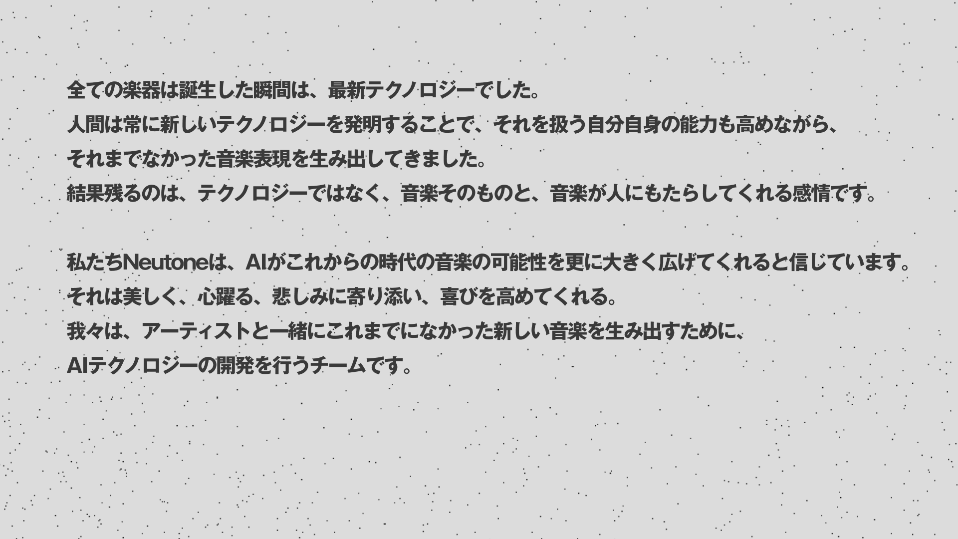 私たちNeutoneは、AIがこれからの時代の音楽の可能性を更に大きく広げてくれると信じています。