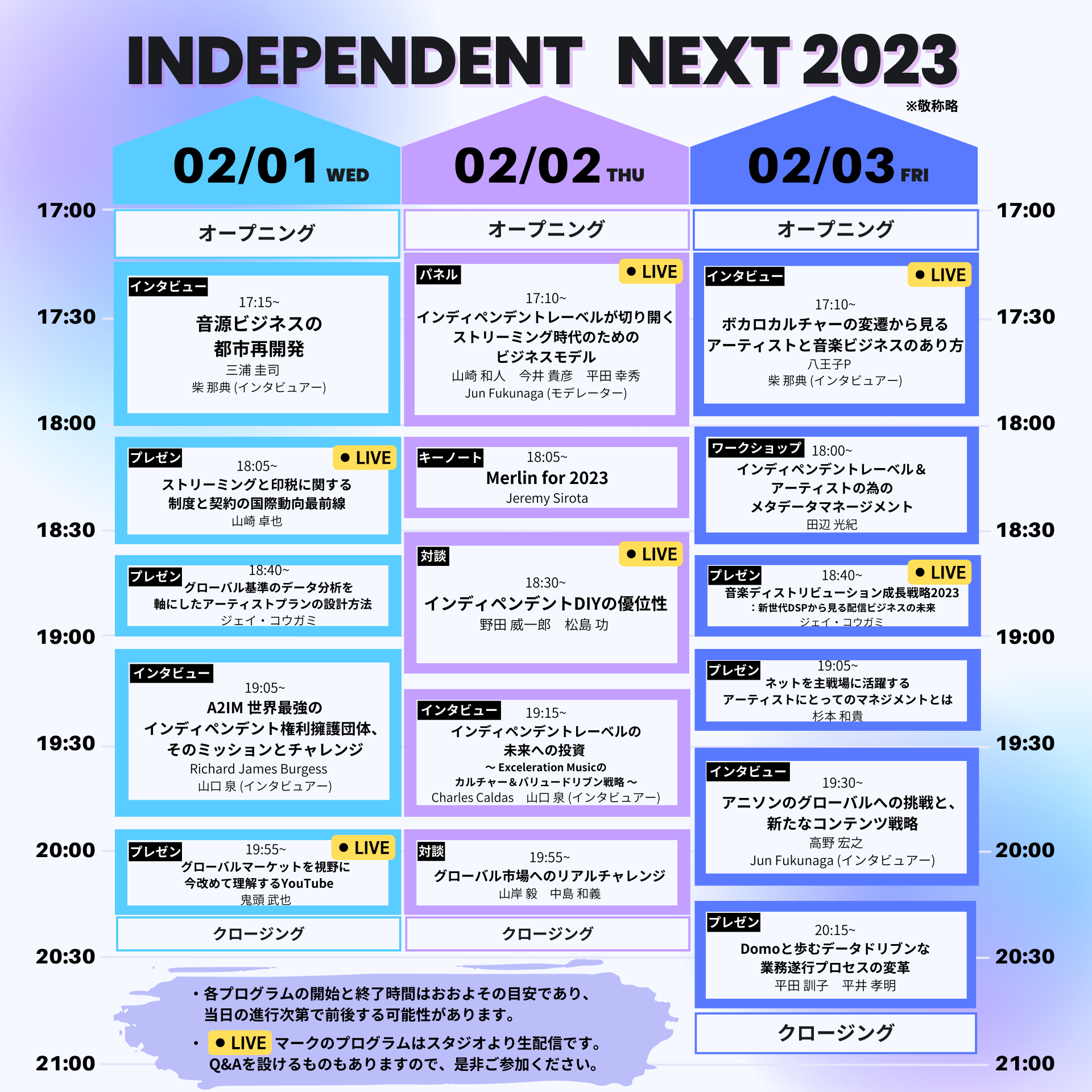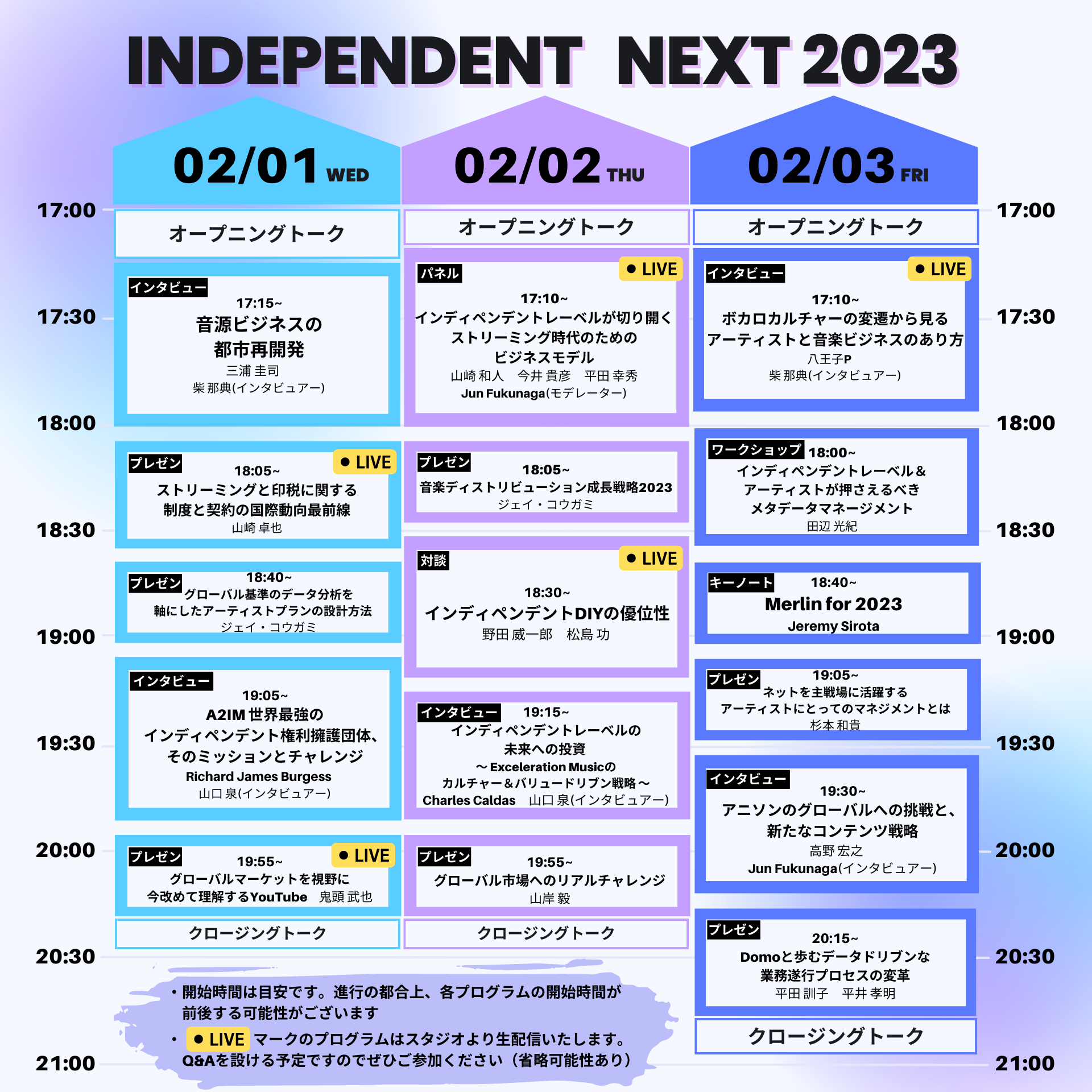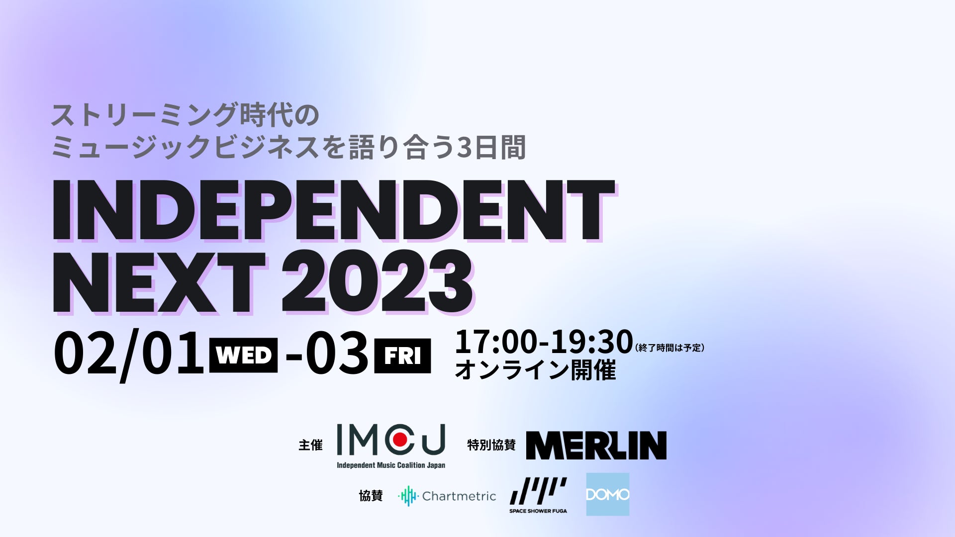 インディペンデントレコード事業者及びアーティストのグローバル市場での活動を支援する一般社団法人IMCJでは、2023年2月1日〜3日の3日間、レコード&ミュージックビジネスのオンラインカンファレンス「Independent Next 2023」を開催します。