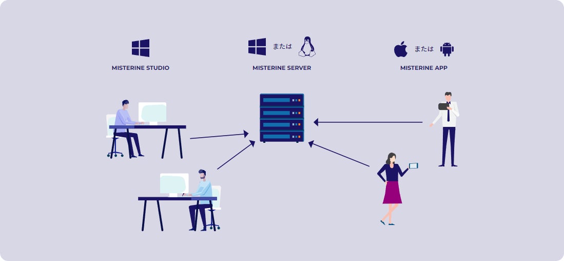 ※ Misterine Studio エンタープライズ版をお選びいただいた場合は、クラウドサーバーではなく自社内のサーバーをご利用いただくことができます。