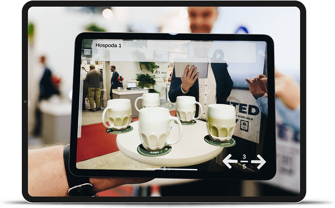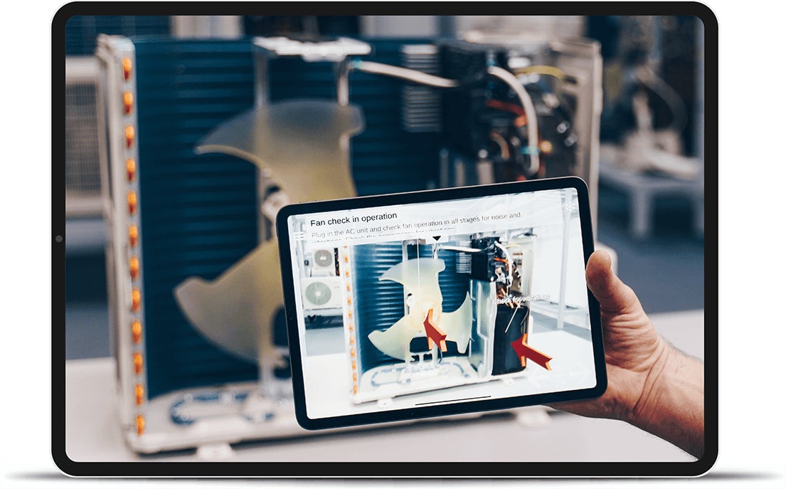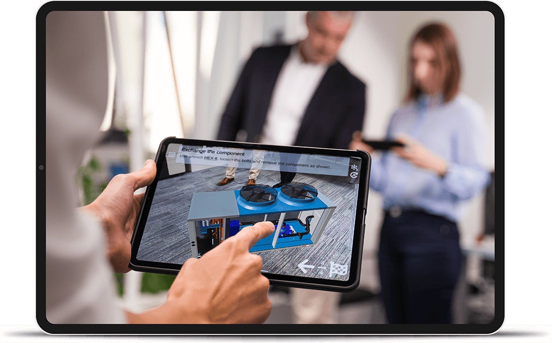 製品ポートフォリオをタブレットやスマートグラスで展示し、実機の輸送費用を削減