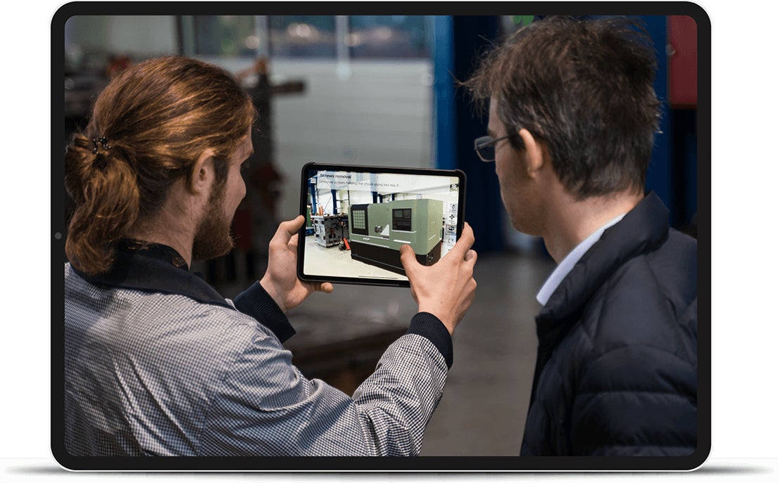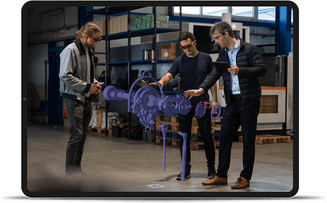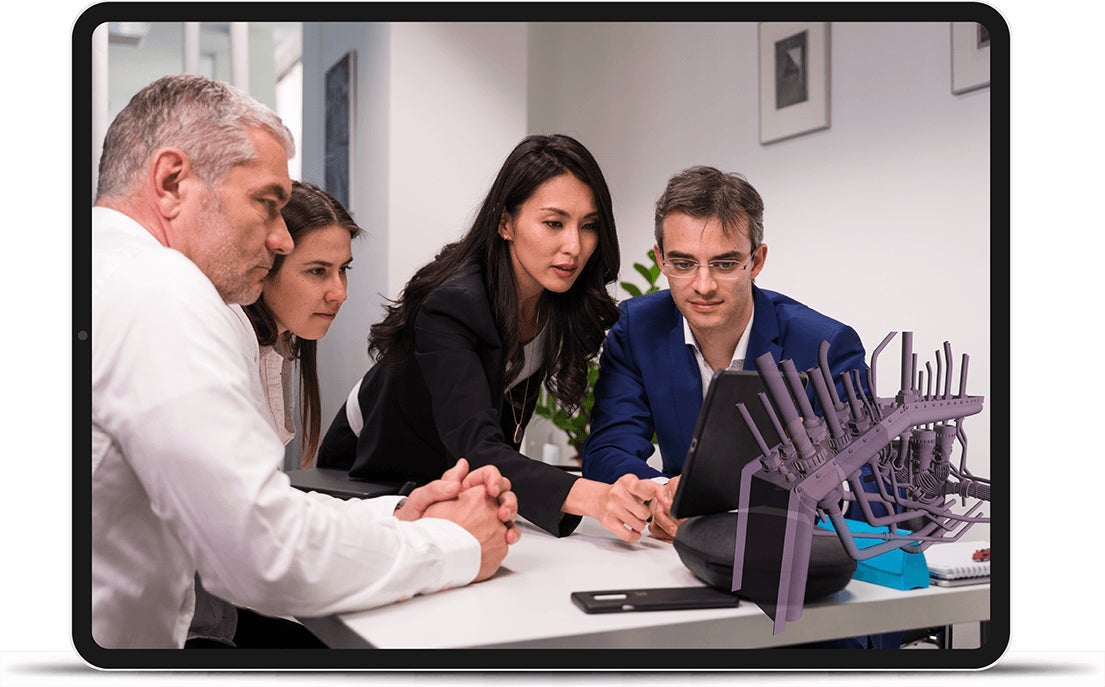 顧客の製造現場またはオフィス訪問時に実物大・拡大縮小サイズの自社製品を3Dで紹介