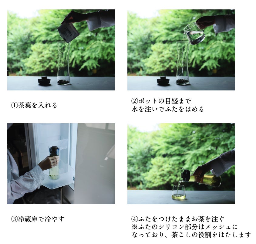 teploティーポットで温かいお茶をこだわって楽しんでいるユーザーから、夏場にも冷たいお茶をこだわって楽しめる製品を求める多くのお声をいただいたことから、約2年の開発期間をかけ、水出しカラフェ・グラスの開発を行い、この度発売に至りました。