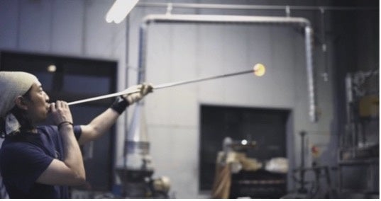 カラフェのガラス部分およびグラス:小樽の工場で職人が一つ一つ手吹きで制作しており、ガラスの厚みを、図面や数値では表すことができないほど微細に調整しながら制作することで、注ぎ口の薄さや底面の曲線の美しさを追求しています。