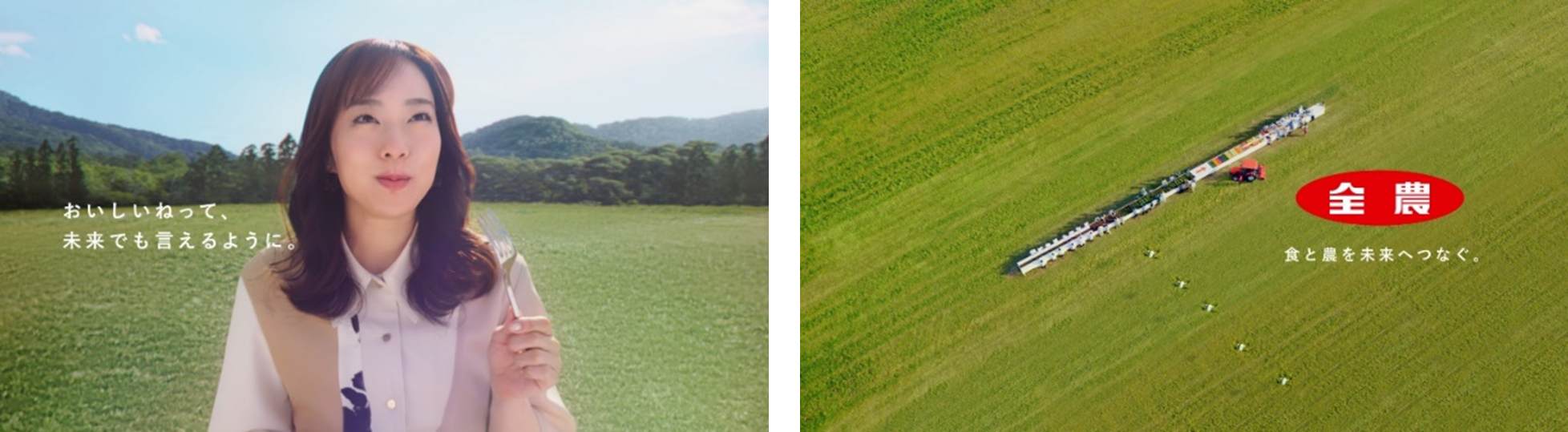 おいしさを待っていてくれる人のために。おいしいねって、未来でも言えるように。誰よりも厳しくおいしさを見つめ、優しく育て、丁寧に届ける。全農の「食と農を未来へつなぐ。」というメッセージをストレートに伝える新CMとなっております。