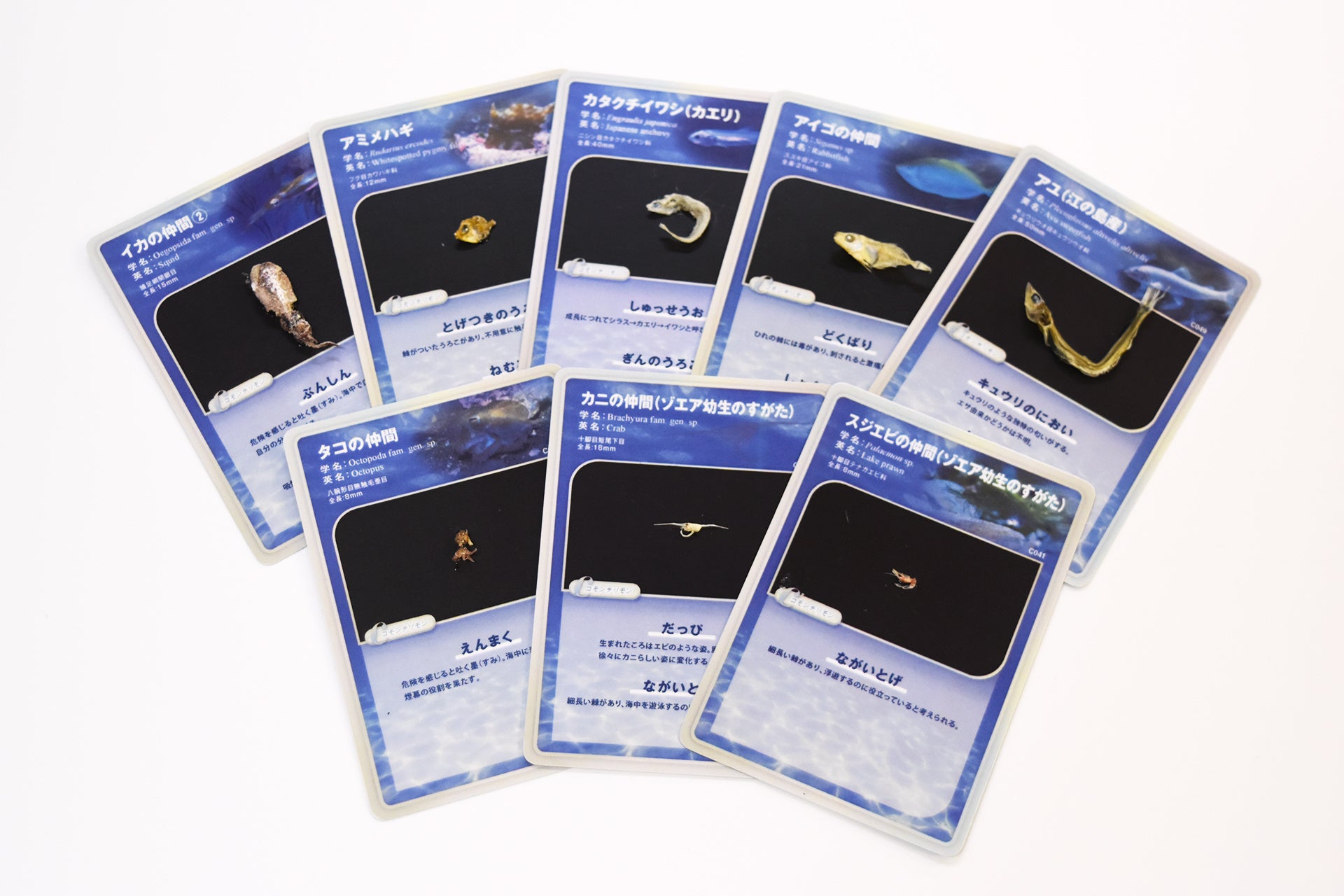 ちりめんじゃこの原料となるカタクチイワシの仔魚(シラス)を漁獲する際に混獲される、魚の稚魚やイカ、タコ、カニなどの幼生を、ちりめんに混じるモンスターに見立てて「チリメンモンスター(通称:チリモン)」と呼んでいます。