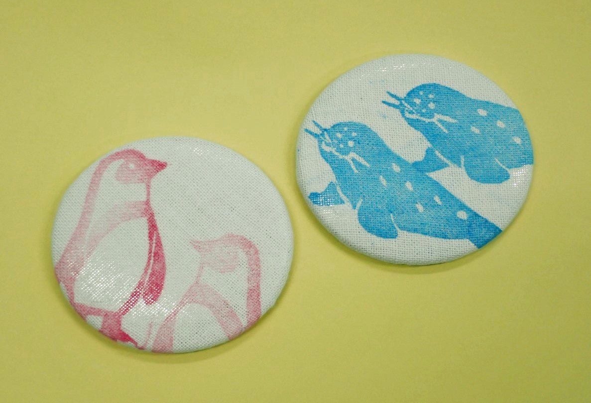 “えのすい”生まれの生き物スタンプを布に押してオリジナルのバッジが作れます。