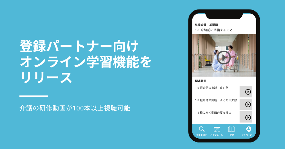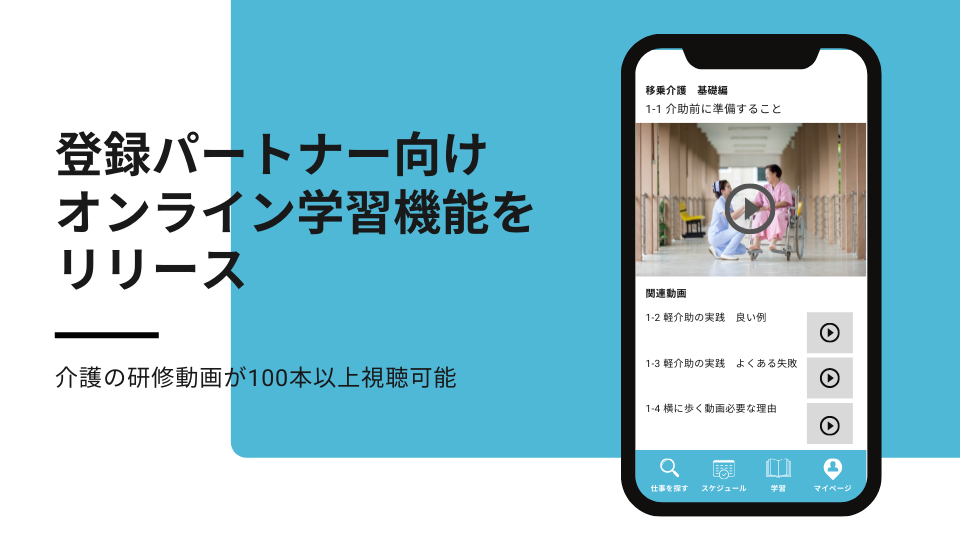 オーダーメイド介護サービス「イチロウ」を提供する株式会社LINK(本社:東京都渋谷区、代表取締役:水野 友喜)は、介護士がいつでも介護に関する学習動画を視聴できるオンライン学習機能をリリースしました。