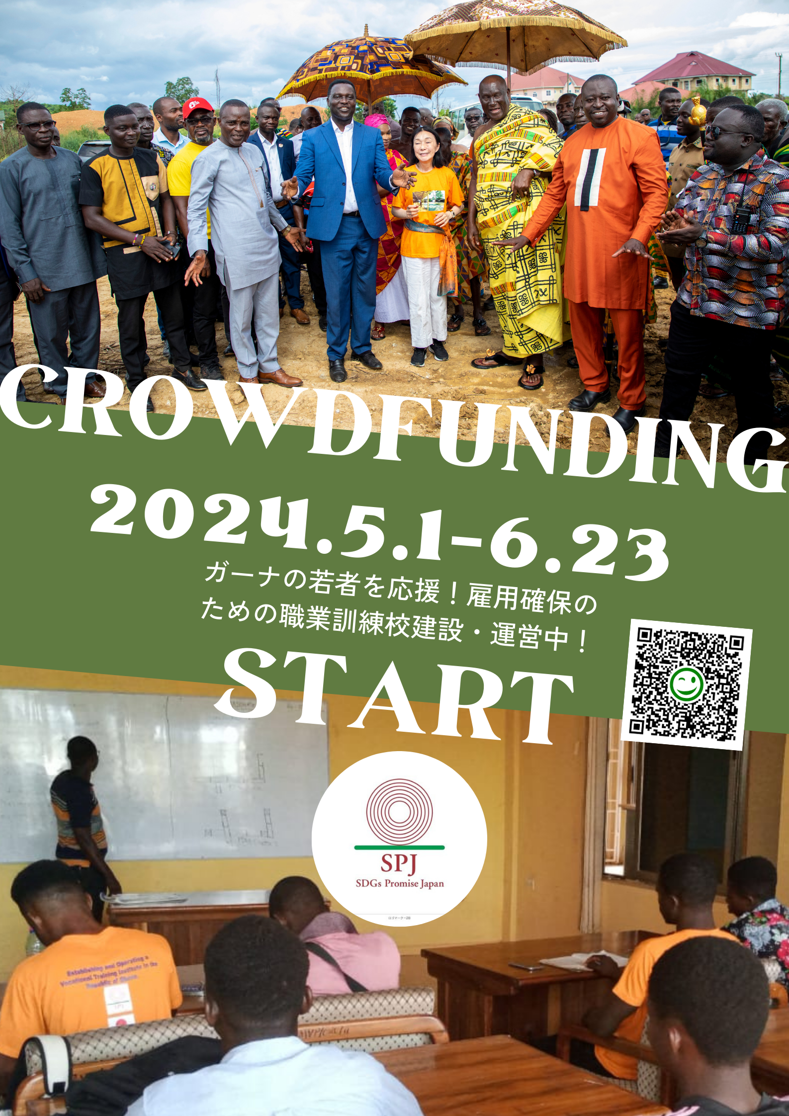 特定非営利活動法人SDGs・プロミス・ジャパン(以下SPJ、理事長:鈴木りえこ)は、「隈研吾先生の設計をガーナで実現!職業訓練校の奨学金で誰も取り残さない明るい未来へ!」をタイトルにクラウドファンディングを始めました。隈研吾先生がボランティアで設計したガーナの職業訓練校で学ぶ学生や教師たちへのサポートのため、貧しい学生たちが継続的に自立に向けた技術を学ぶことができる資金支援を皆様からのご協力で実現したいと考えております。