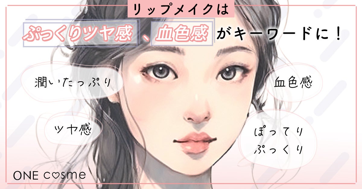 トレンド2:ぷっくりツヤ感のある血色のよいリップ