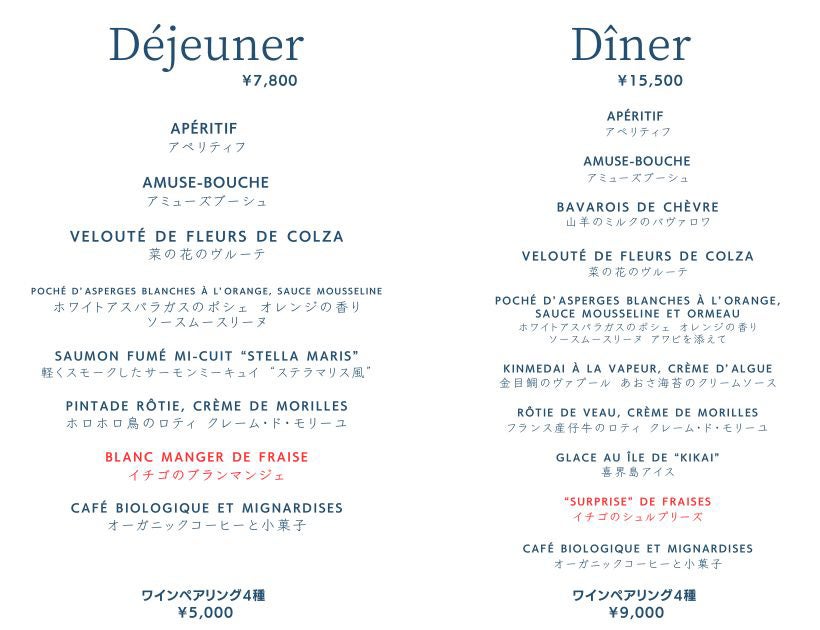 ホワイトアスパラガス・菜の花・新玉ねぎなどの春の食材にメゾンタテルヨシノスペシャルアートなストロベリーデザートをランチとディナー各コースにそれぞれお楽しみいただけます。