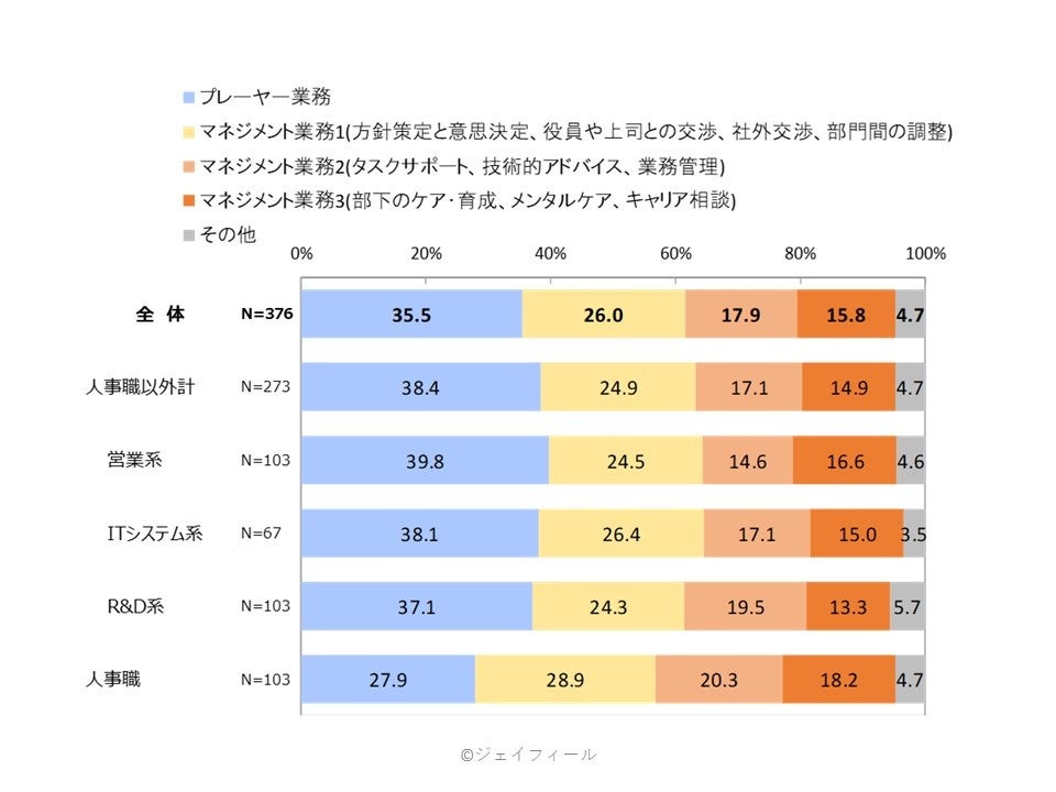 ほとんどのマネジャーはプレーヤーとしての業務を兼務しており、マネジメント上最も重要だと考える「部下の育成、メンタルケア」へは全体の業務時間の15%程しかさけていないことが分かりました。又、多くのマネジャーは仕事のテクニカルなマネジメントより人のマネジメントに課題感を持っており、約4割のマネジャーはマネジメントの苦労を共有できる「場」が必要だと感じているようです。今後のマネジャー支援、育成に重要な示唆となる実態調査を発表いたします。