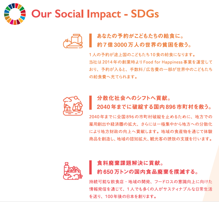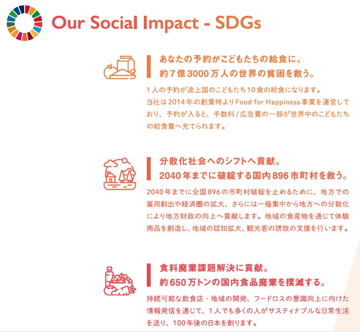地方に訪れるきっかけづくりが、やがて地方創生につながると信じて、今後も日本各地の飲食事業者と手を取り合って、「最高の食の体験」を世の中に生み出ていきます。