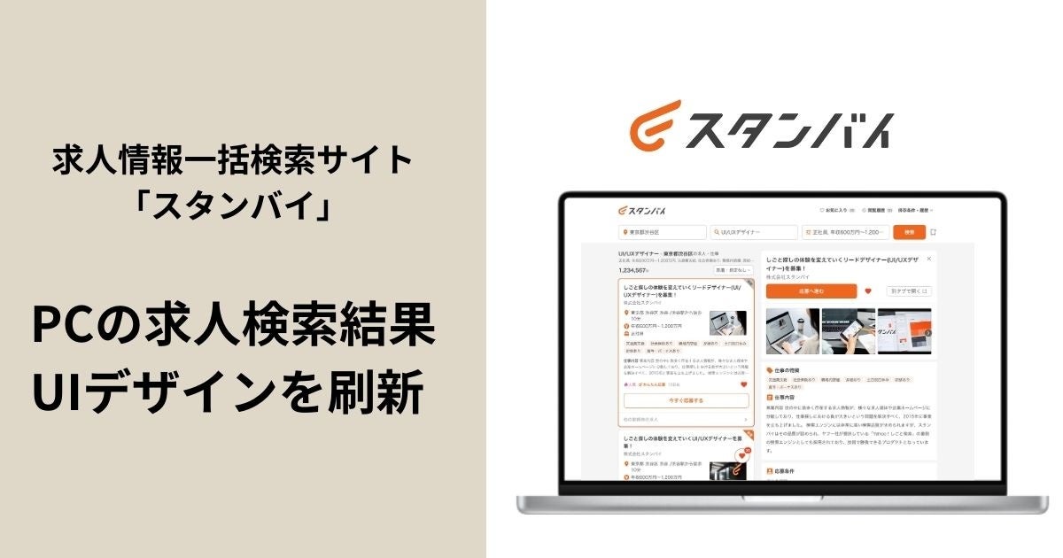 株式会社スタンバイが運営する求人情報一括検索サイト「スタンバイ」(https://jp.stanby.com/)は、2024年11月12日より、パソコン画面における求人検索結果ページのUIデザインを刷新いたします。