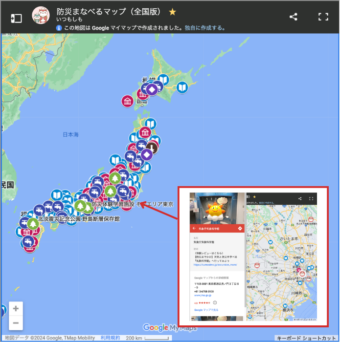 行きたいエリアの防災施設を探したい時にオンラインですぐ使えるよう、オリジナルの全国防災施設マップ(https://itumosimo.jp/bosai_excursion/#map)を作成しました。