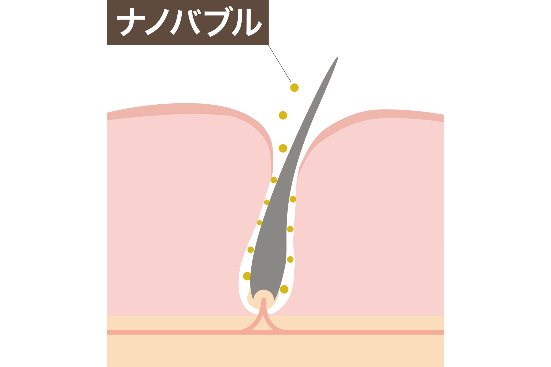 ナノバブルは、通常の気泡よりもはるかに小さいため、毛穴の奥深くまで浸透しやすく、美容成分を肌のすみずみ※まで届けます。※角質層まで