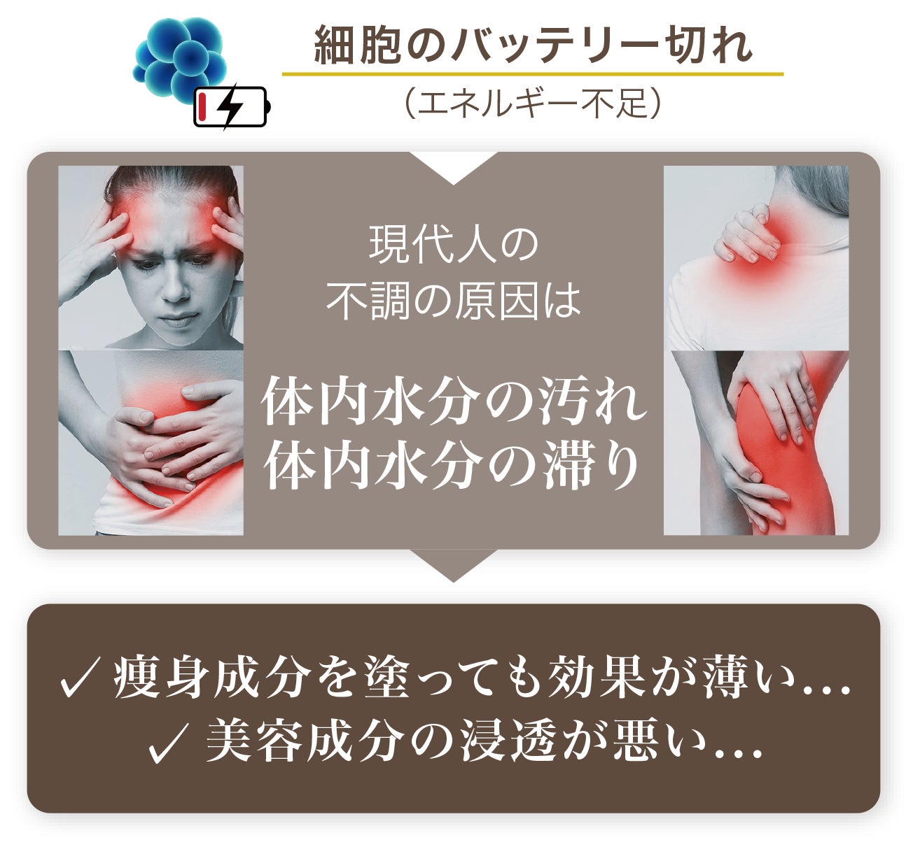 現代社会を生きる私たちは、かつてないほどのストレスや環境の変化にさらされています。私たちの身体の約60%は水分で構成されており、それは全身を巡る体内水分として、酸素や栄養素を届け、老廃物や疲労物質を運び出すという、身体の重要な役割を担っています。