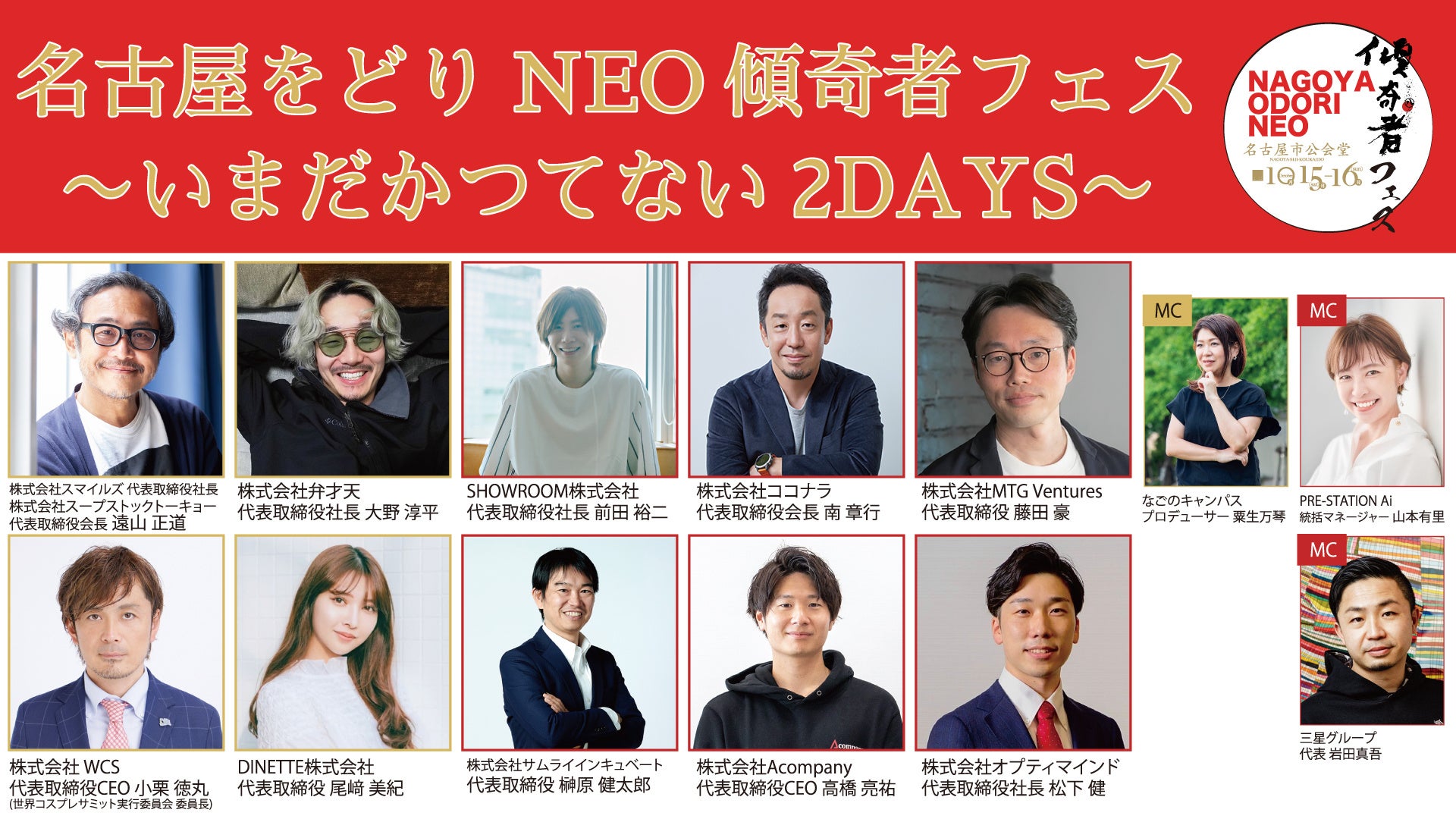 豪華起業家・経営者が集結!「名古屋をどりNEO傾奇者フェス 〜いまだかつてない2DAYS〜」開催2022年10月15日/16日