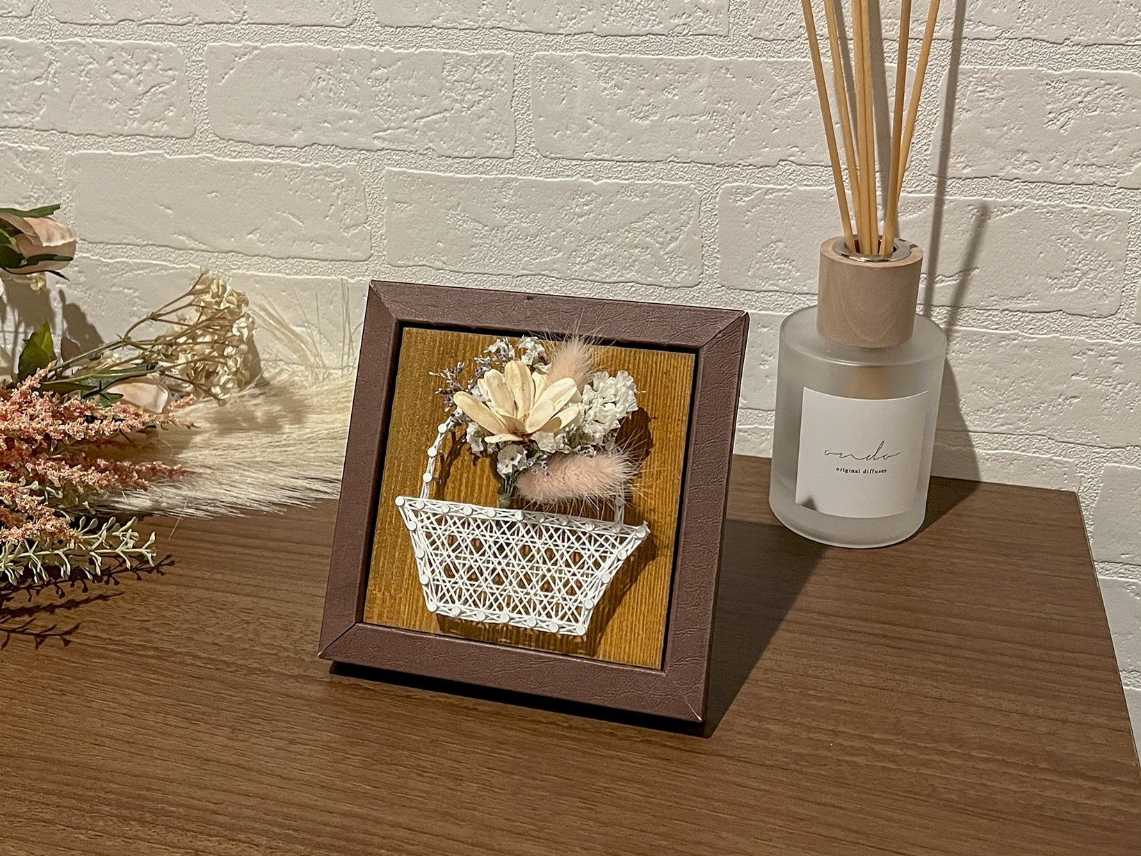 完成した作品は玄関やテーブル、棚に飾ってお部屋のインテリアとして楽しむことができます。また、お祝いやありがとうの気持ちを込めた手作りプレゼントとして贈るのにもおすすめです。