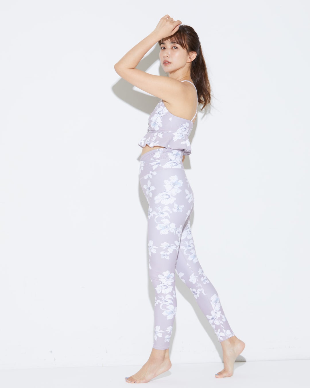 同柄のレギンスは、Julierで定評のあるウエストのクロスラインがお腹周りをよりすっきり見せてくれるハイウエストレギンスです。甘すぎないニュアンスカラーのピンクが気に入っています。セットアップはもちろん単品でもどんなJulierのアイテムとも好相性です。