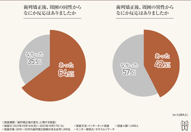 ここまでの調査で、歯列矯正は同性・異性を問わず好意的な反応が多いことが明らかになりました。