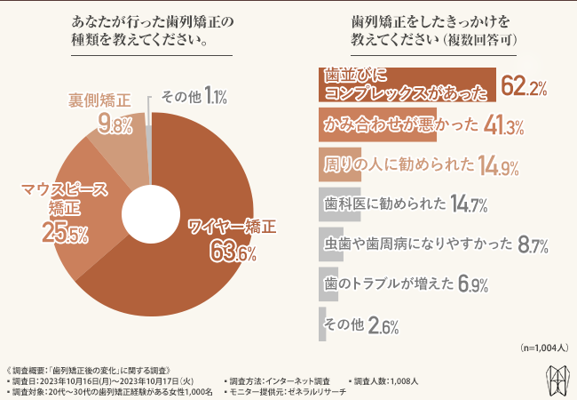そこで今回、医療法人社団山手会アトラスタワーデンタルクリニック(https://8wa.jp/)は20代~30代の歯列矯正経験がある女性1,000名を対象に「歯列矯正後の変化」に関する調査を実施しました。