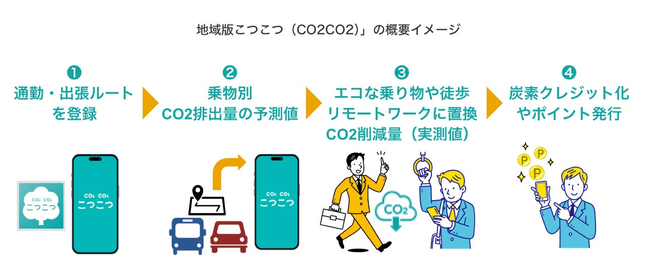 移動の脱炭素アプリ『地域版こつこつ(CO2CO2)』とトライアルサービスは、基本合意に基づく取り組みの第一弾となります。