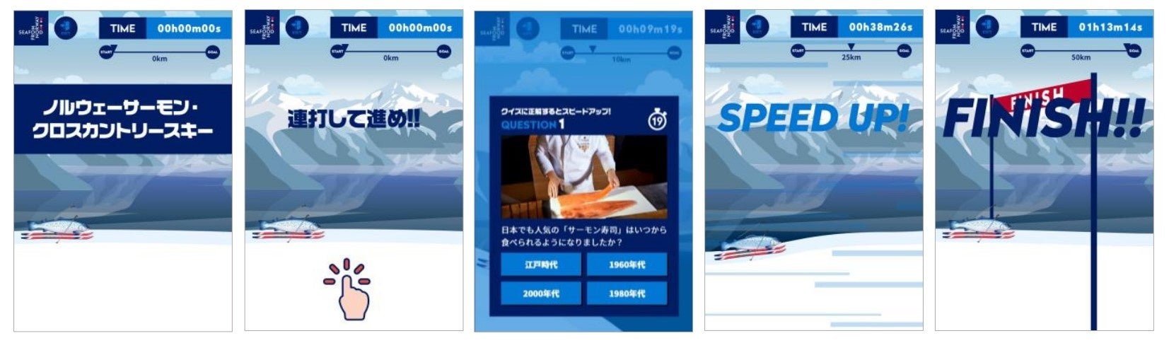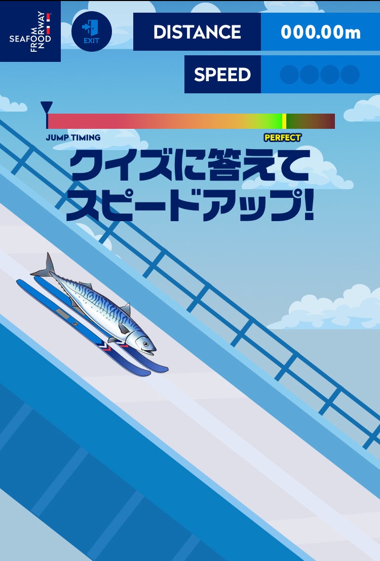 1. キャンペーンサイトにアクセスし、オンライン「ノルディック複合シーフード杯」のオンラインゲームに挑戦!「ノルウェーサーモン・クロスカントリースキー」または「ノルウェーサバ・スキージャンプ」からお選びいただけます。