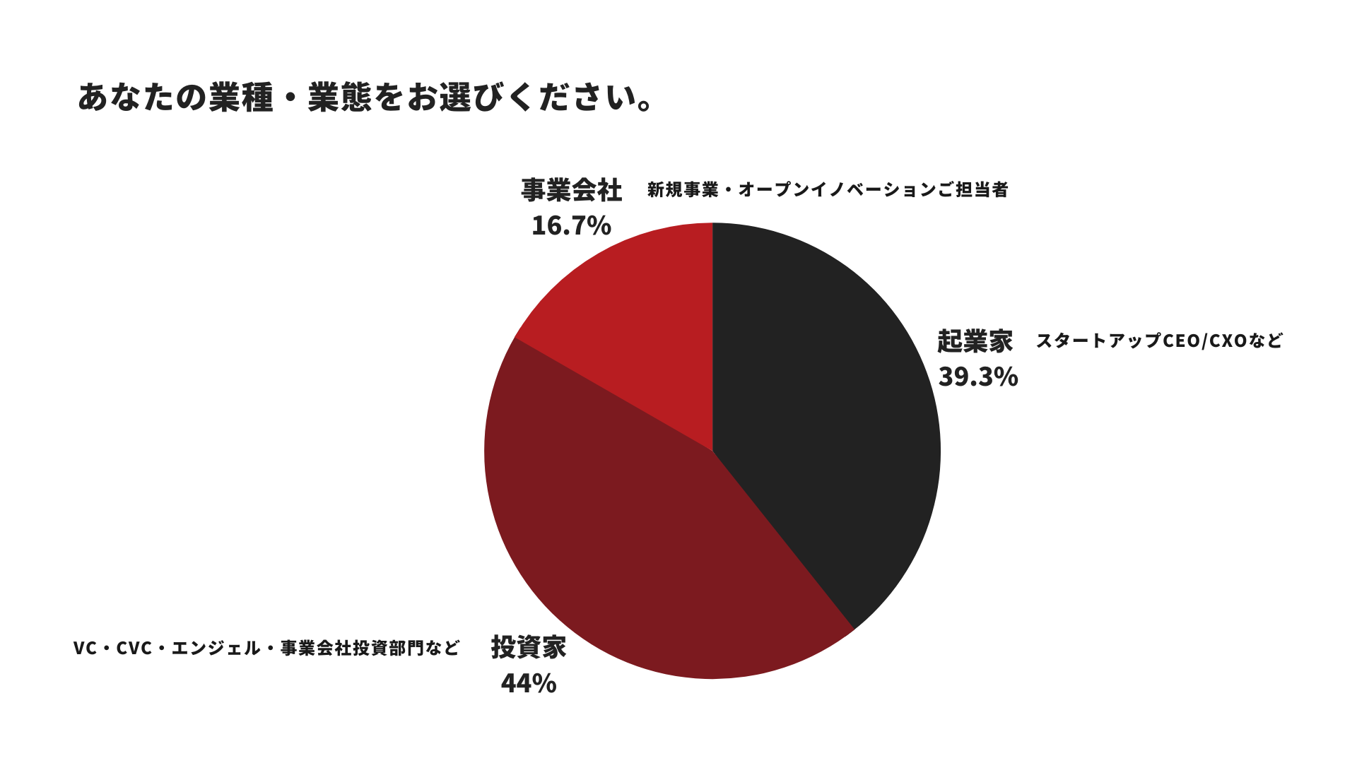 その回答傾向からPRO BASEに参加するスタートアップ・投資家・事業会社の傾向が浮かび上がってきましたので共有いたします。