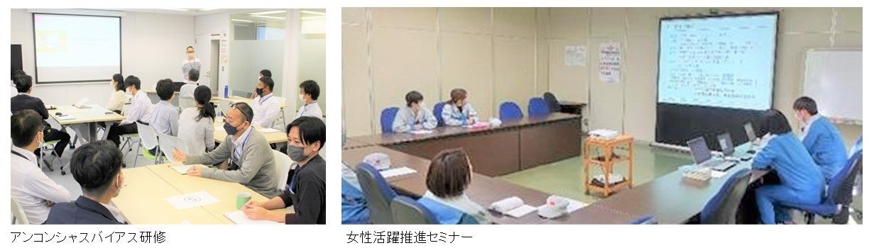 全社員を対象として、無意識の根拠のない思いこみや偏見に気付くためのアンコンシャスバイアス研修や、女性社員を講師とした女性活躍推進についての社内セミナーを実施しています。