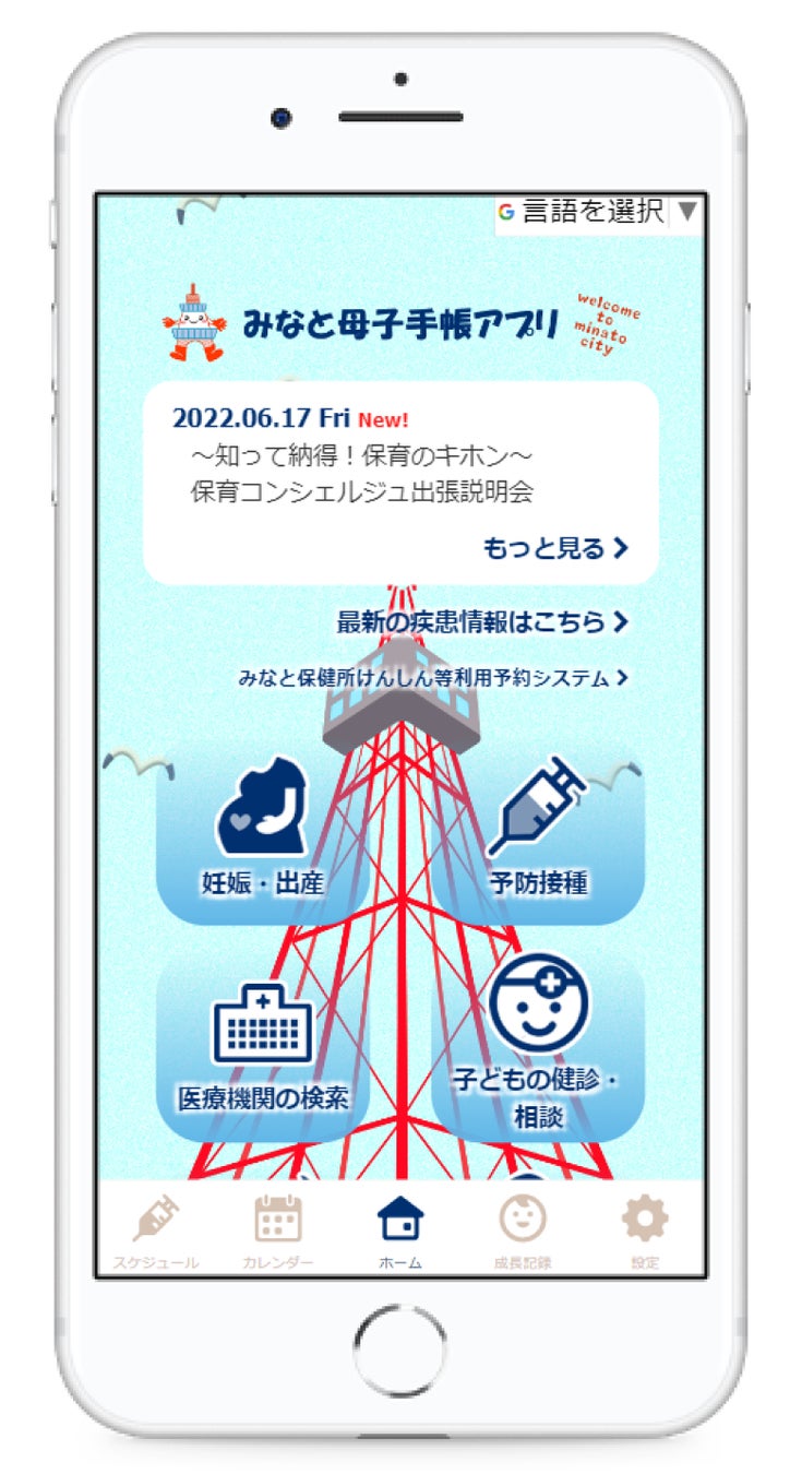 「みなと母子手帳アプリ」は、電子母子手帳・子育て支援サービスを組み合わせた、子育て応援アプリです。