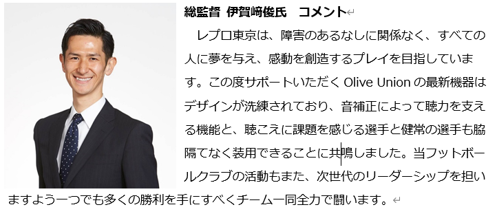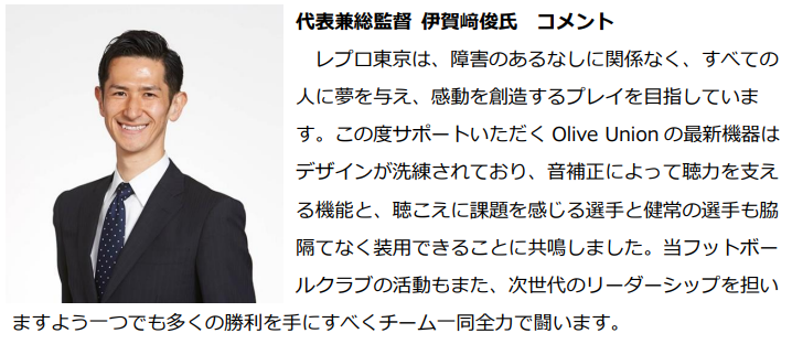 会話をサポートするスマートイヤホン・オリーブユニオンが障害者サッカーの先駆者「レプロ東京」と今季オフィシャルスポンサー契約を締結