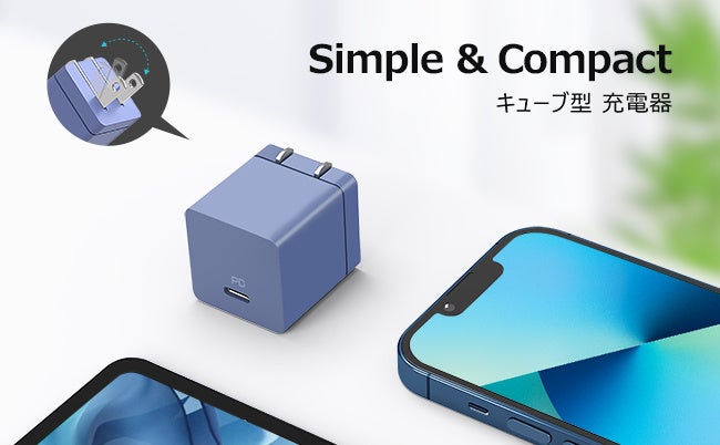シンプルなキューブ型の充電器は、皆さまのライフスタイルに寄り添います。ファッションを楽しむように、デジタル小物でも自分らしいスタイルを楽しんでみませんか?