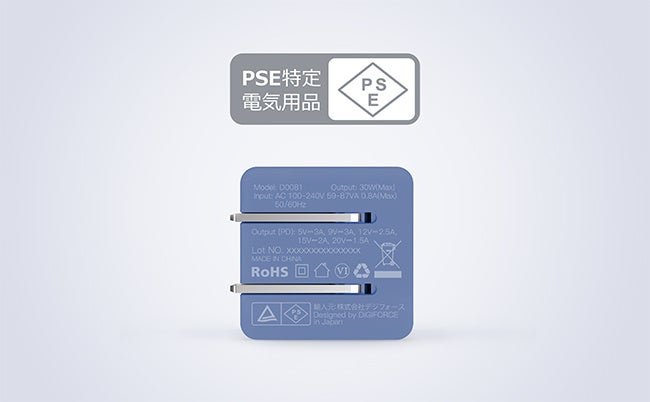 | 出力 | 最大出力30W Output (PD):5V/3A, 9V/3A, 12V/2.5A, 15V/2A, 20V/1.5A (PPS):3.3V-11V/3A |