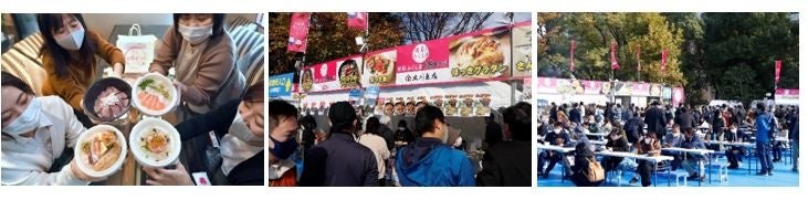 21年11月には日比谷公園において、「第7回ジャパン フィッシャーマンズ フェスティバル」と「発見!ふくしまお魚まつり」を同時開催。入場制限など新型コロナ感染防止策を徹底するなか、3日間で計約6万人が来場しました。巨大キッチンカーキャラバンと東京下町〝三大銀座〟お弁当ジャックは、オミクロン株の感染拡大に対応した「発見!ふくしまお魚まつり」の進化系です。