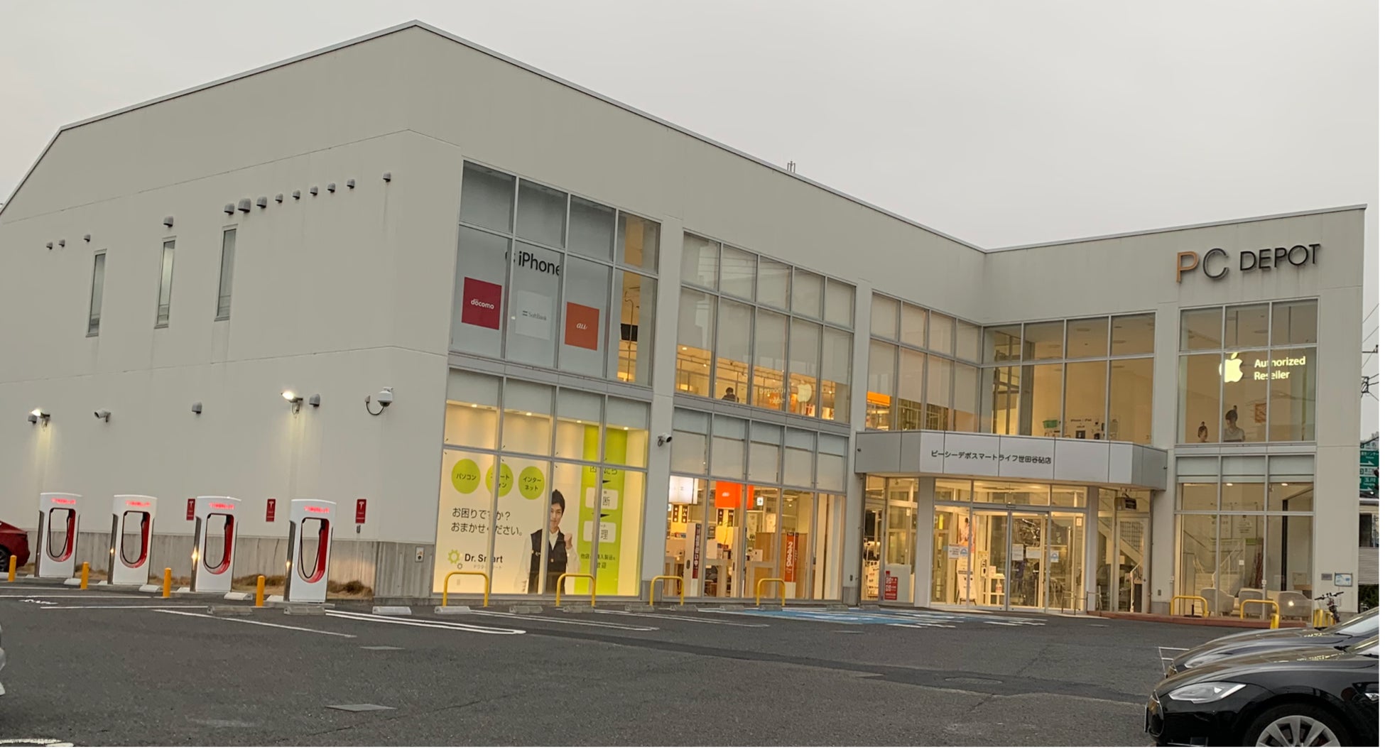 PCデポ 会員向け施設(スマートライフ世田谷砧店)にTeslaスーパーチャージャーを設置